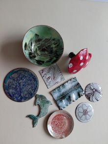 You will take home a small enamel bowl and another shape, enamelled to your own design.
