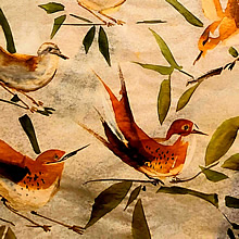 Chinese birds painting can vary in styles hugely. There is the intricate method of Gongbi painting known as meticulous style, the quick strokes of Shuimo meaning water and ink, or Sheng - yi, translating as life and meaning.