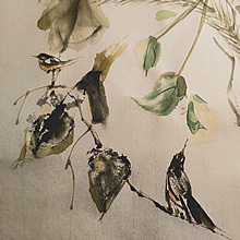 We will start with simple birds in several positions on branches, using black and white Sumi style followed by Shuimo. Our aim is to complete many compositions to choose from for the final design.