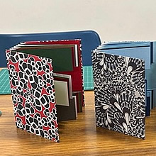 Spend a day exploring the world of book arts. You will make a flag book, essentially a concertina style structure, for displaying 18 small images. We will also use inks, paints, stamps and/or collage materials to make our own covers and end-papers.