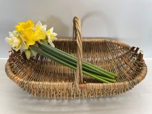 Learn how to make this useful garden trug frame basket. You will attach the frame to the ribs, learn the weave and how to adapt it for the style of the basket. You can make a basket with an over handle or side handles to your preference.