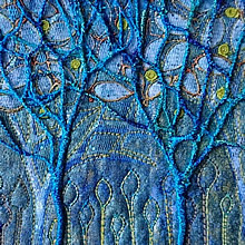 We will print a nice background for our embroidery and include other techniques like foiling and stencilling. Then finish the surface of with machine embroidery to make a lovely orchard landscape.