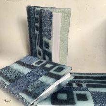 Combine fine wool, silk and even paper to make a beautiful and reusable book cover in shades of blue from the palest forget-me-not to midnight.